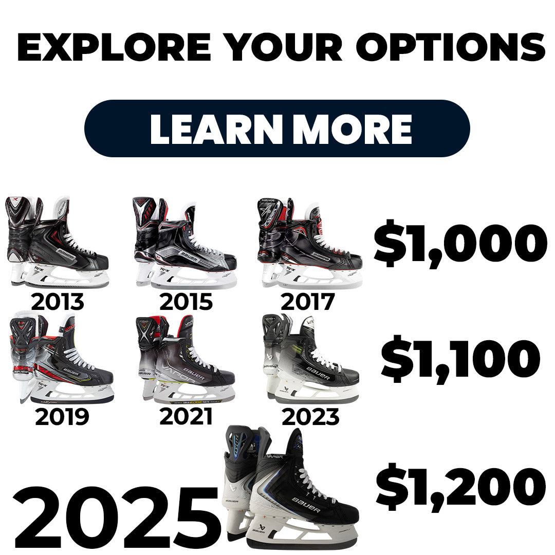 Deep-cleaned pre-owned ice hockey skates, never damaged. Skip the break-in and enjoy all the luxuries of elite level skates.