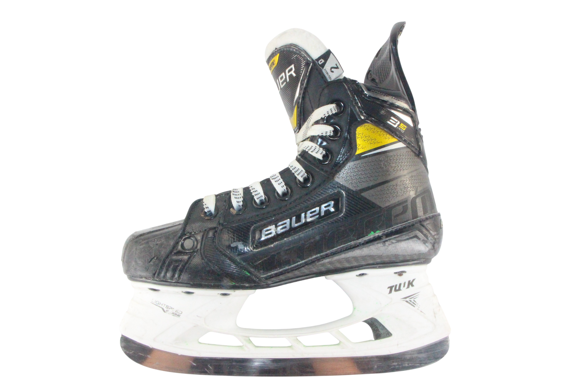 This product is a used Bauer Supreme 3S Pro skate in Size 2, Fit D. Available now at UsedSkateShop.com.