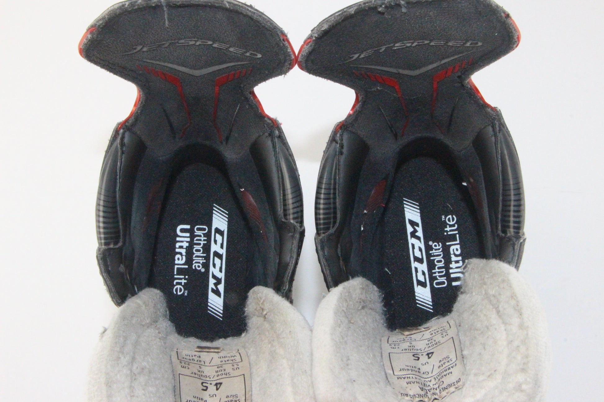 This product is a used CCM Jetspeed FT1 skate in Size 4.5, Fit D. Available now at UsedSkateShop.com.