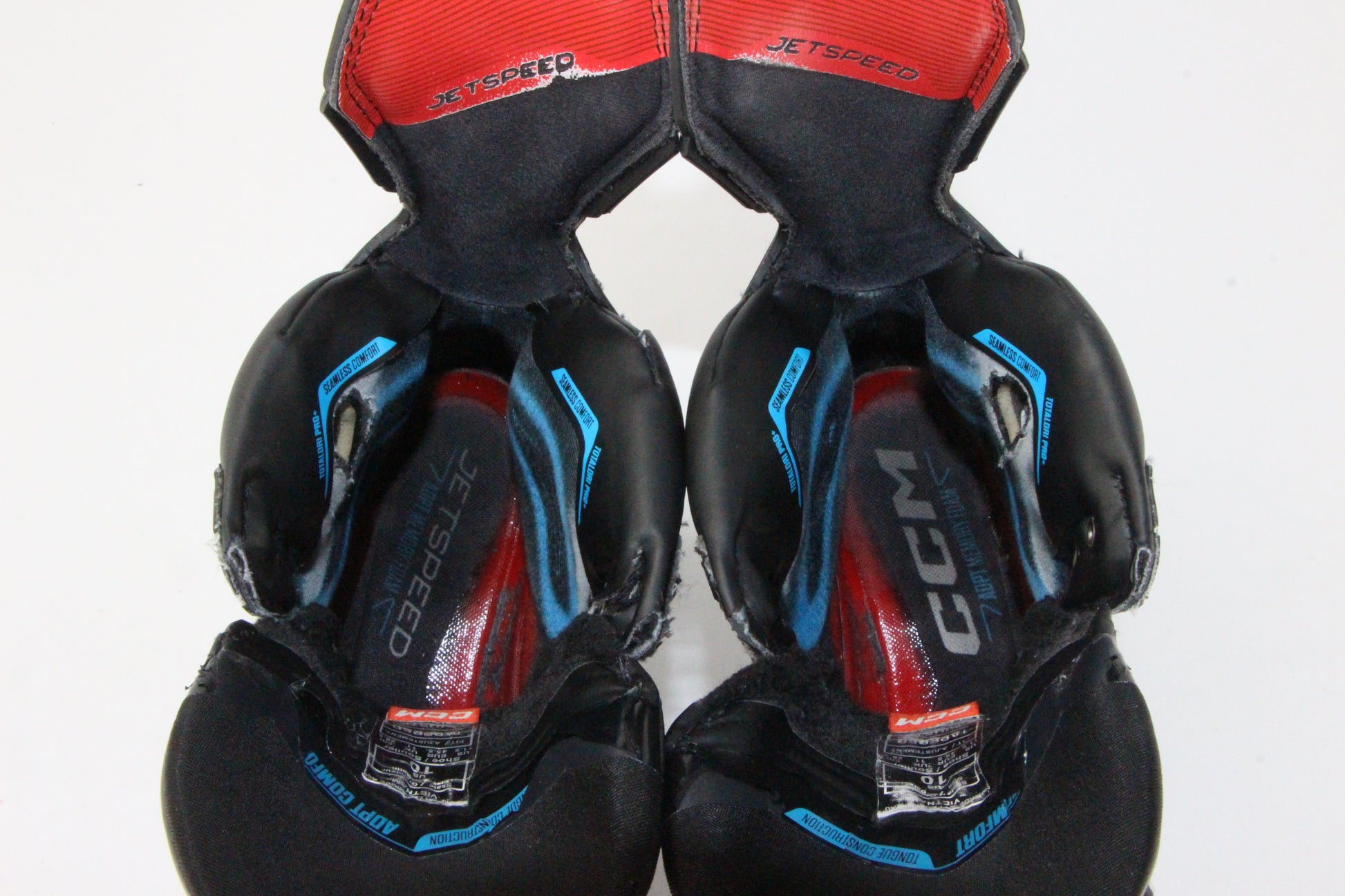 This pair is a used CCM Jetspeed FT6 Pro in Size 10, Fit Tapered.