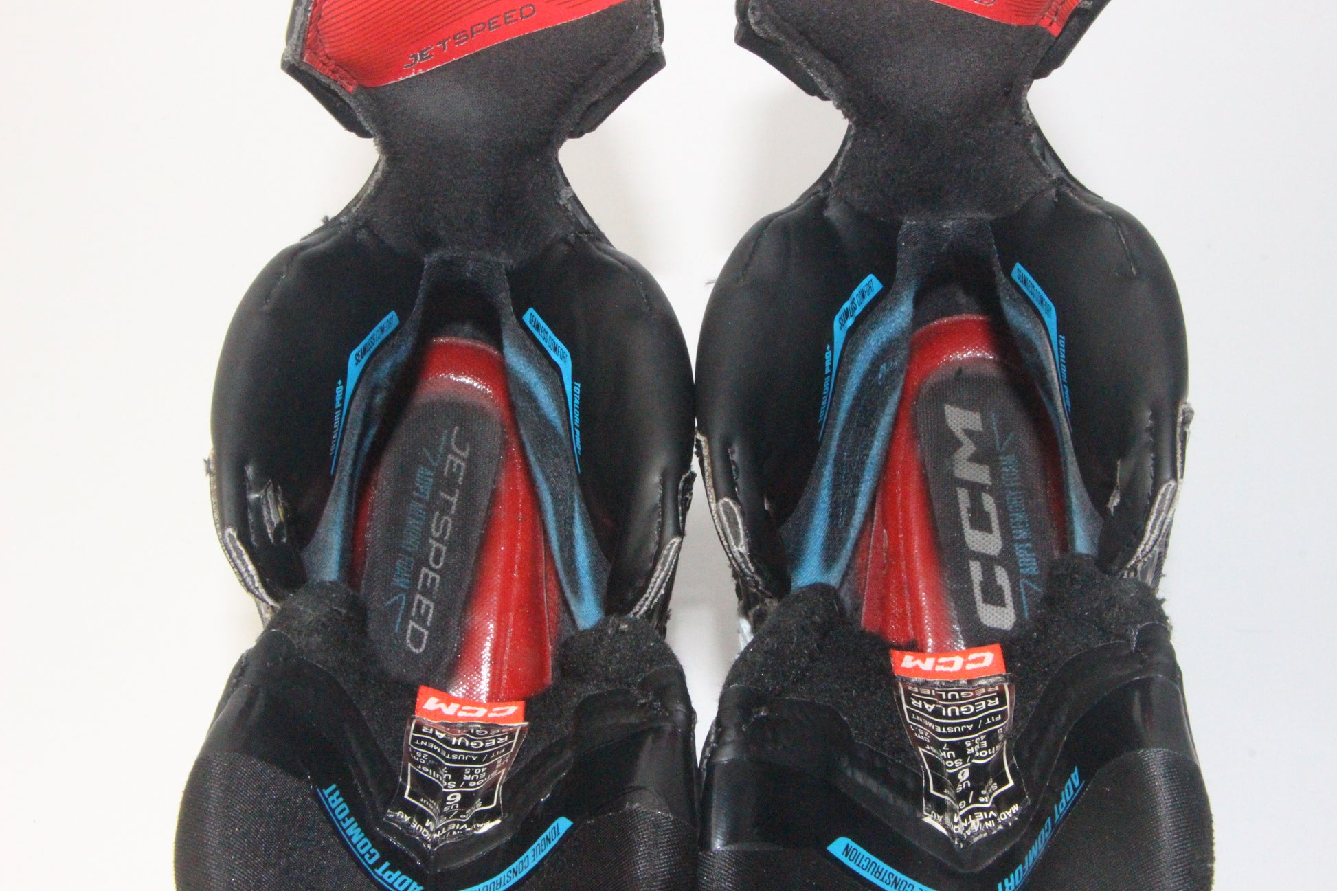 This pair is a used CCM Jetspeed FT6 Pro in Size 6, Fit Regular.