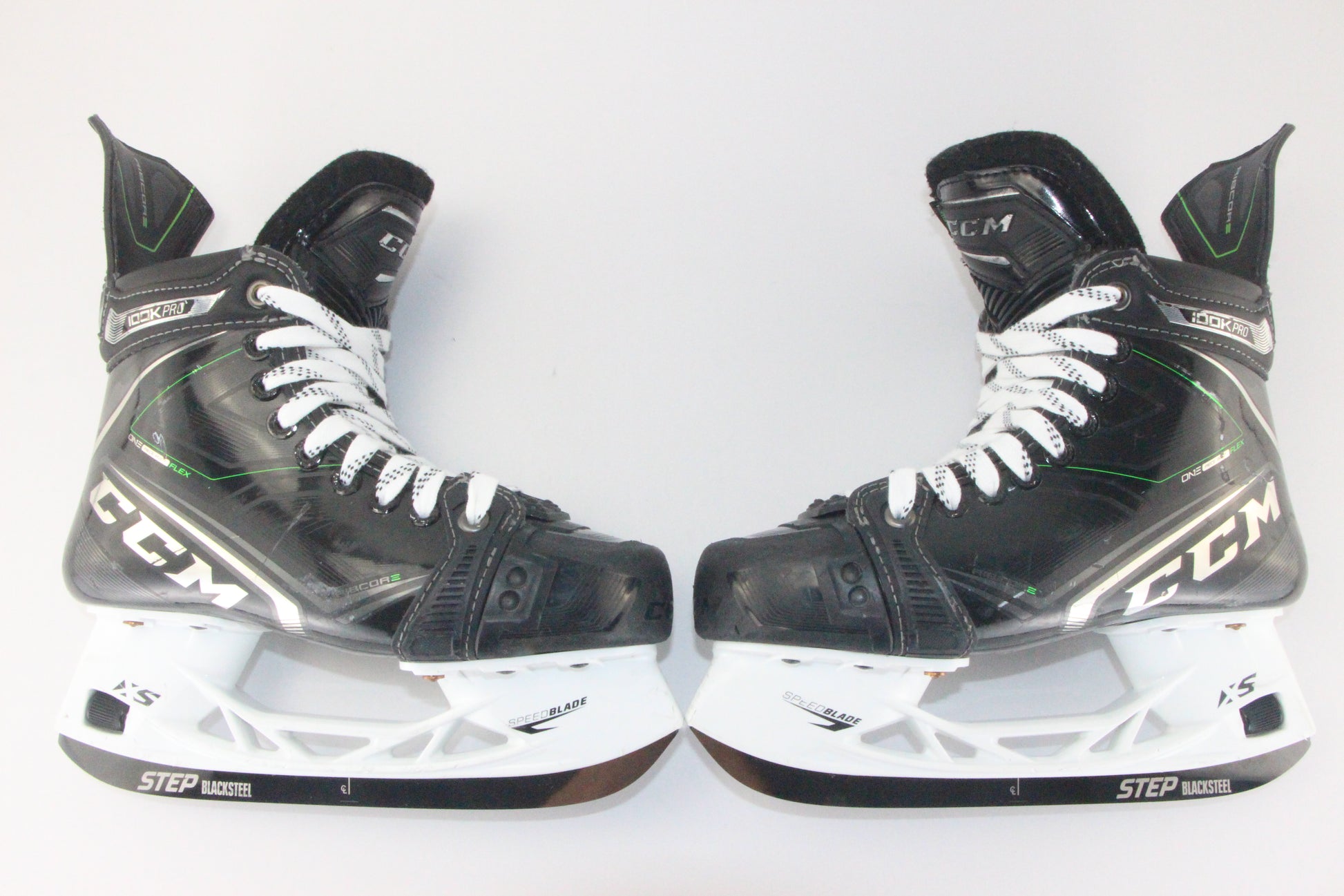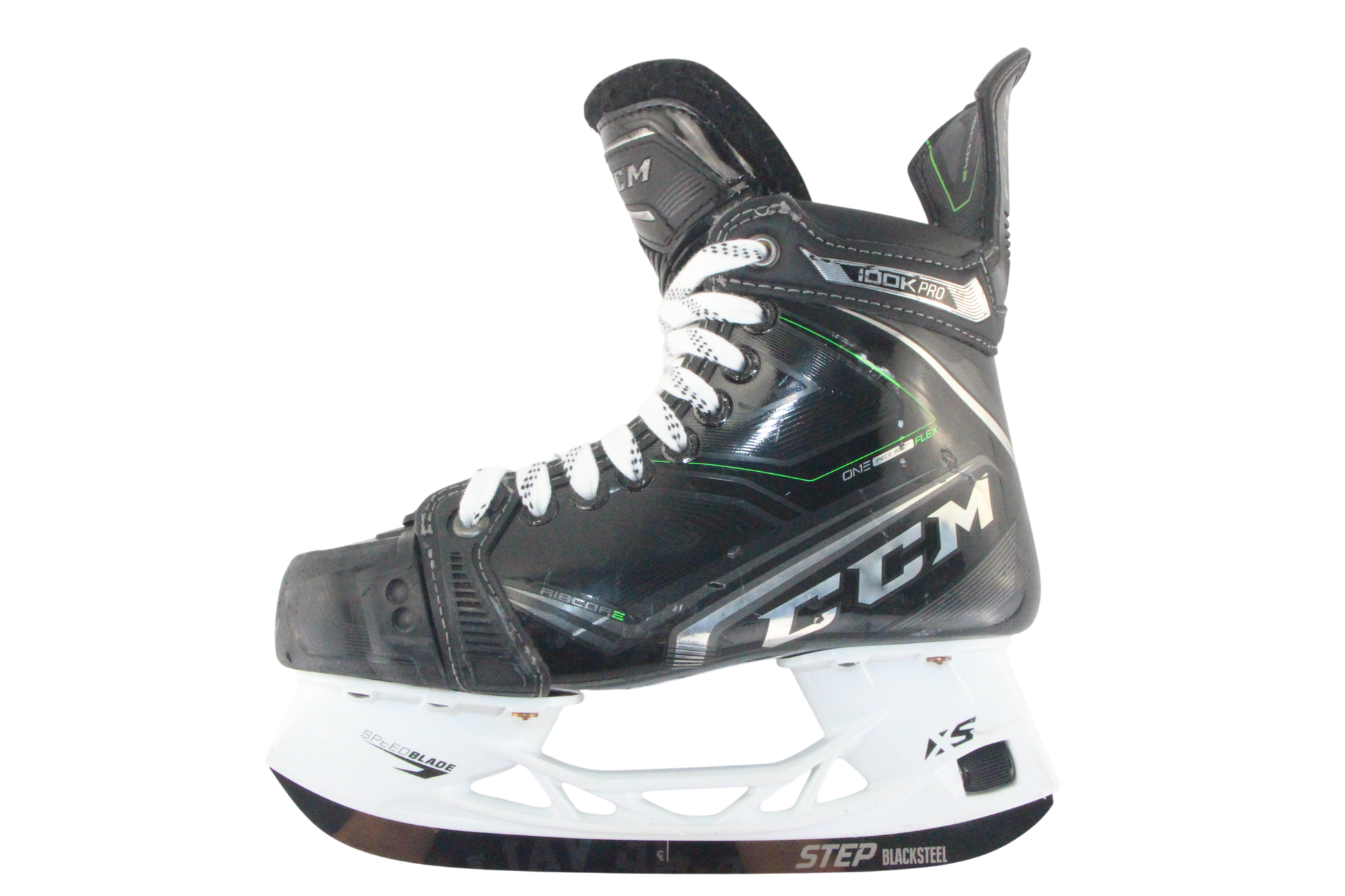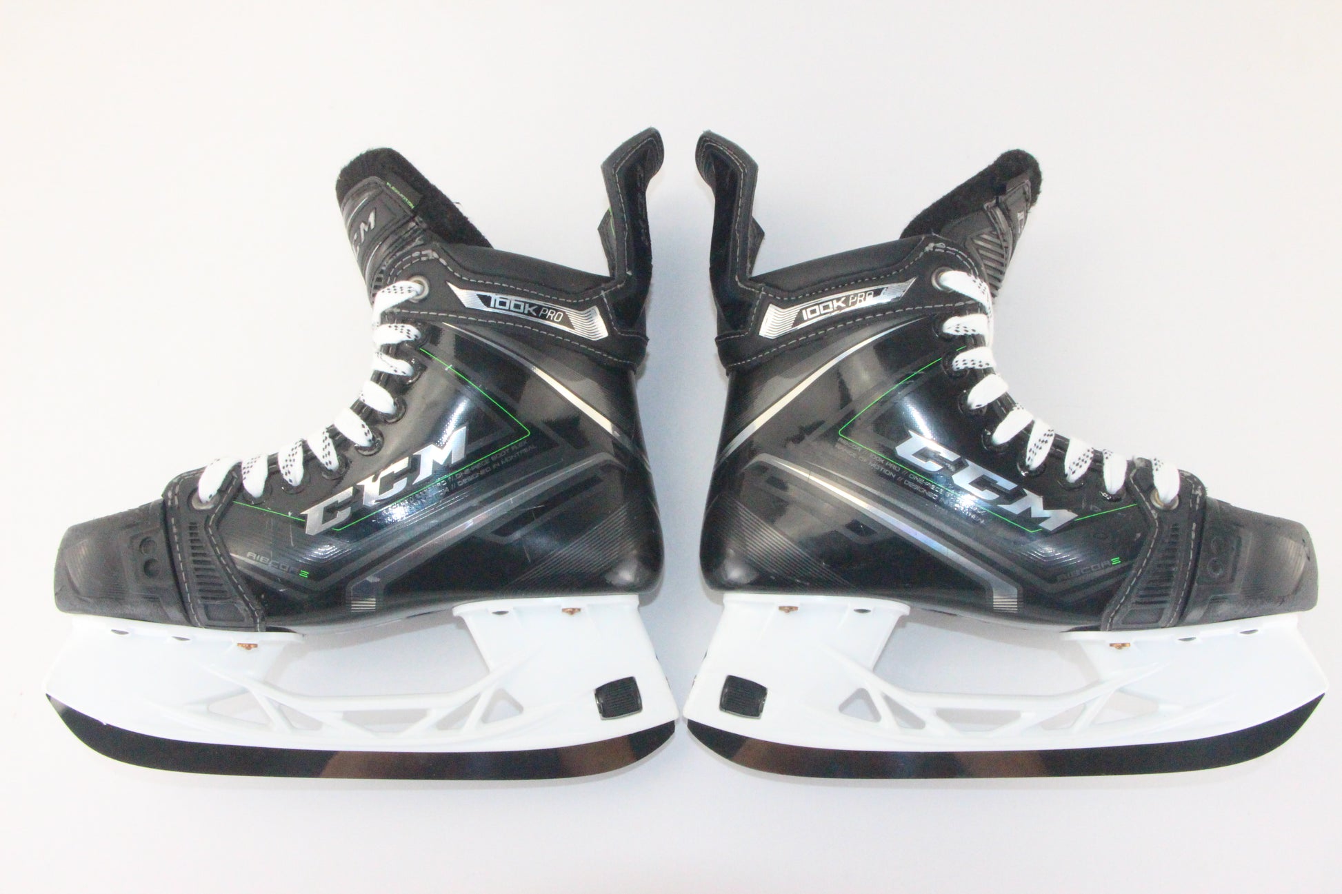 This product is a used CCM Ribcor 100K Pro skate in Size 4, Fit Regular. Available now at UsedSkateShop.com.